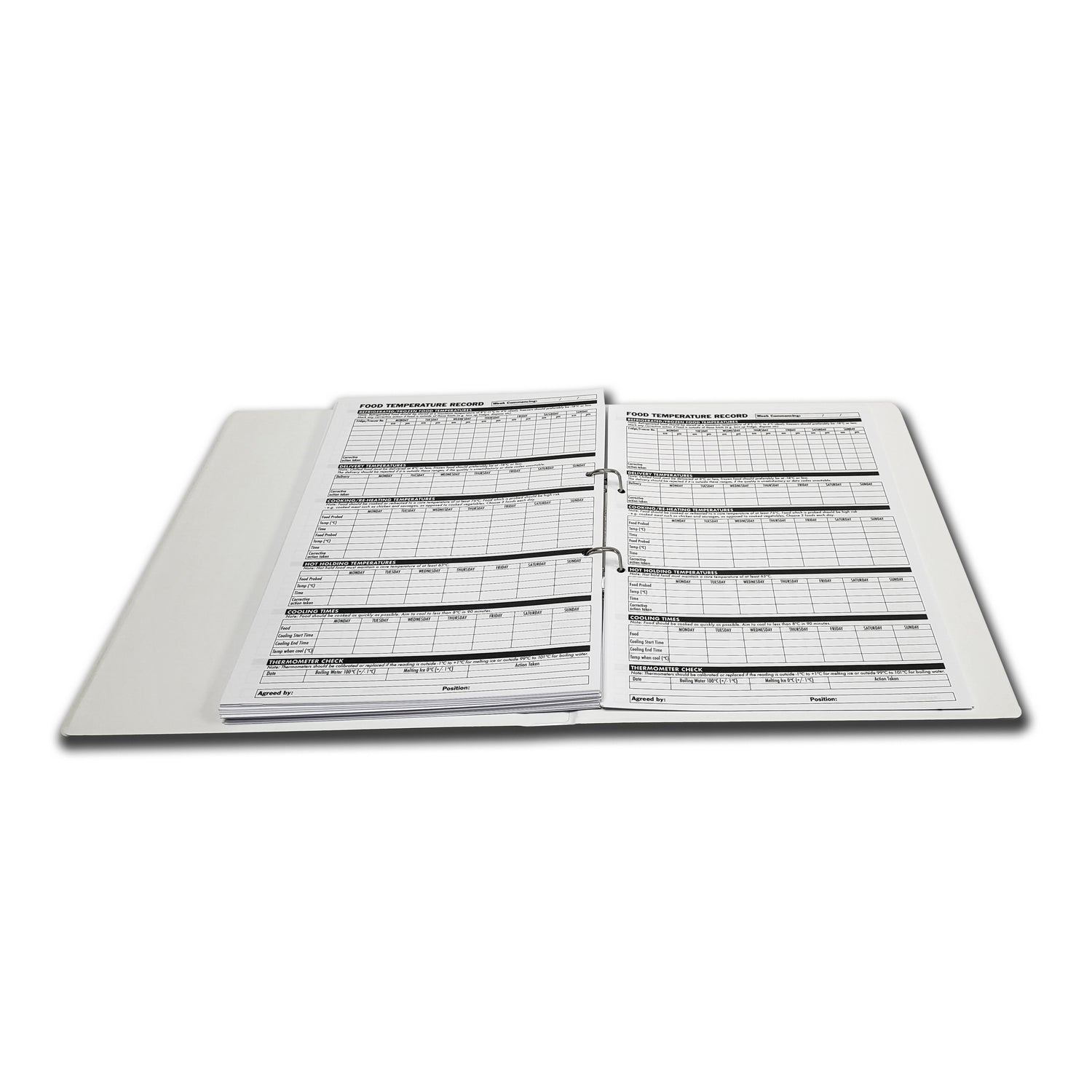 52 week food temperature record log - 1 week per page / enough for the full year - helping you to keep track of the temperature of your food