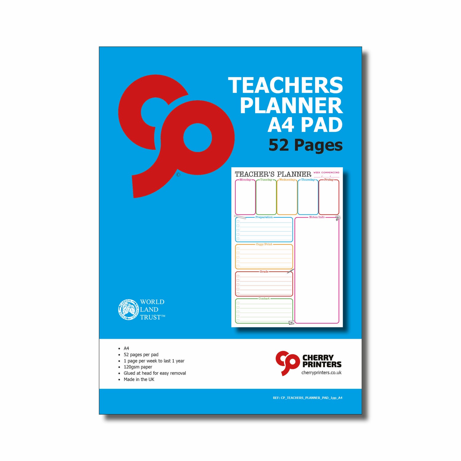 Teachers Planner Pad | A4 210mm x 297mm | 120gsm 52 pages | Glued at head for easy removal