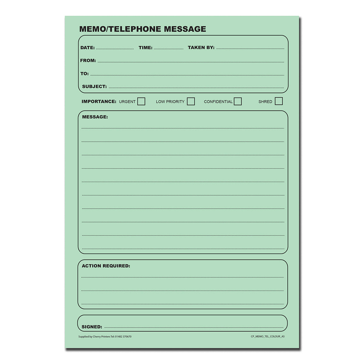 - Cherry Printers Coloured Memo / Telephone Message book is ideal for keeping a note of important messages.