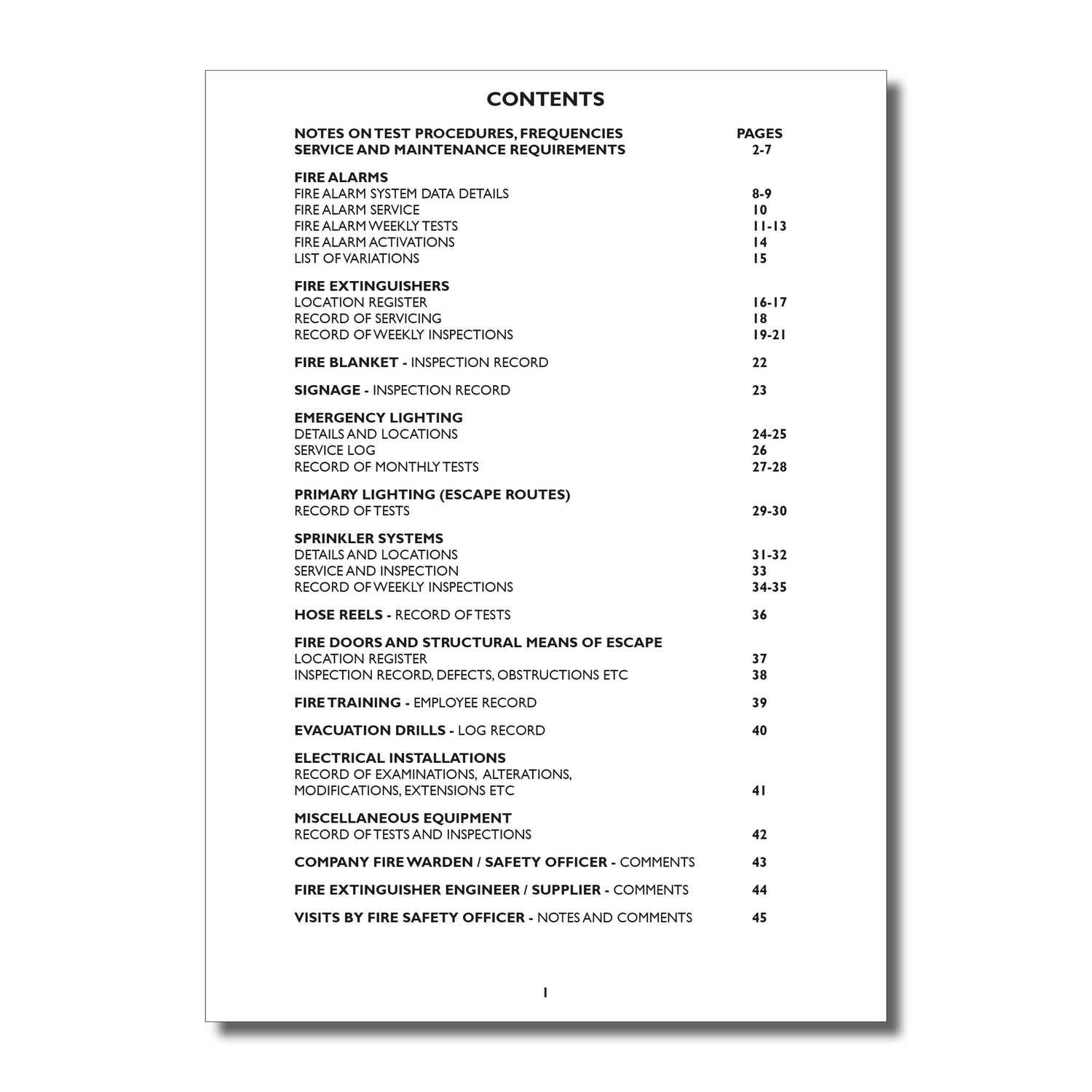 Fully comprehensive - covers alarms extinguishers lighting signage drills and more in one log