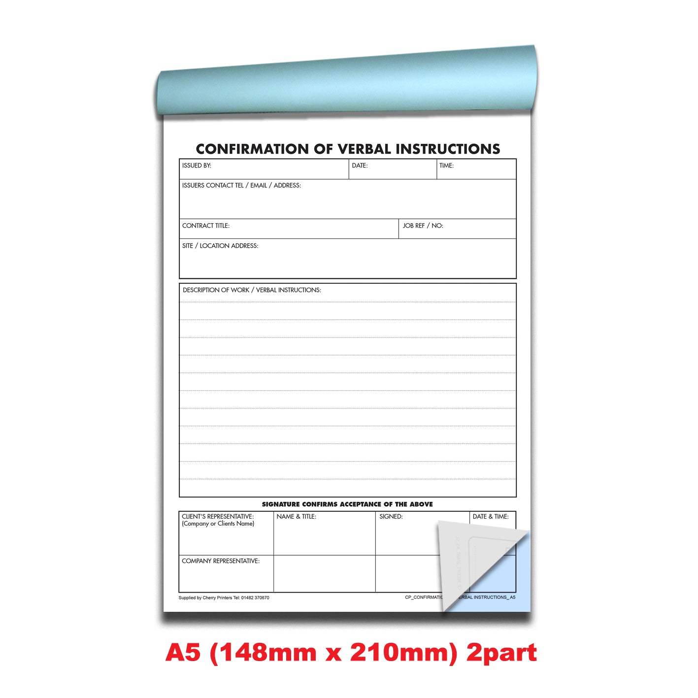 NCR Confirmation of Verbal Instruction Book A5 Duplicate