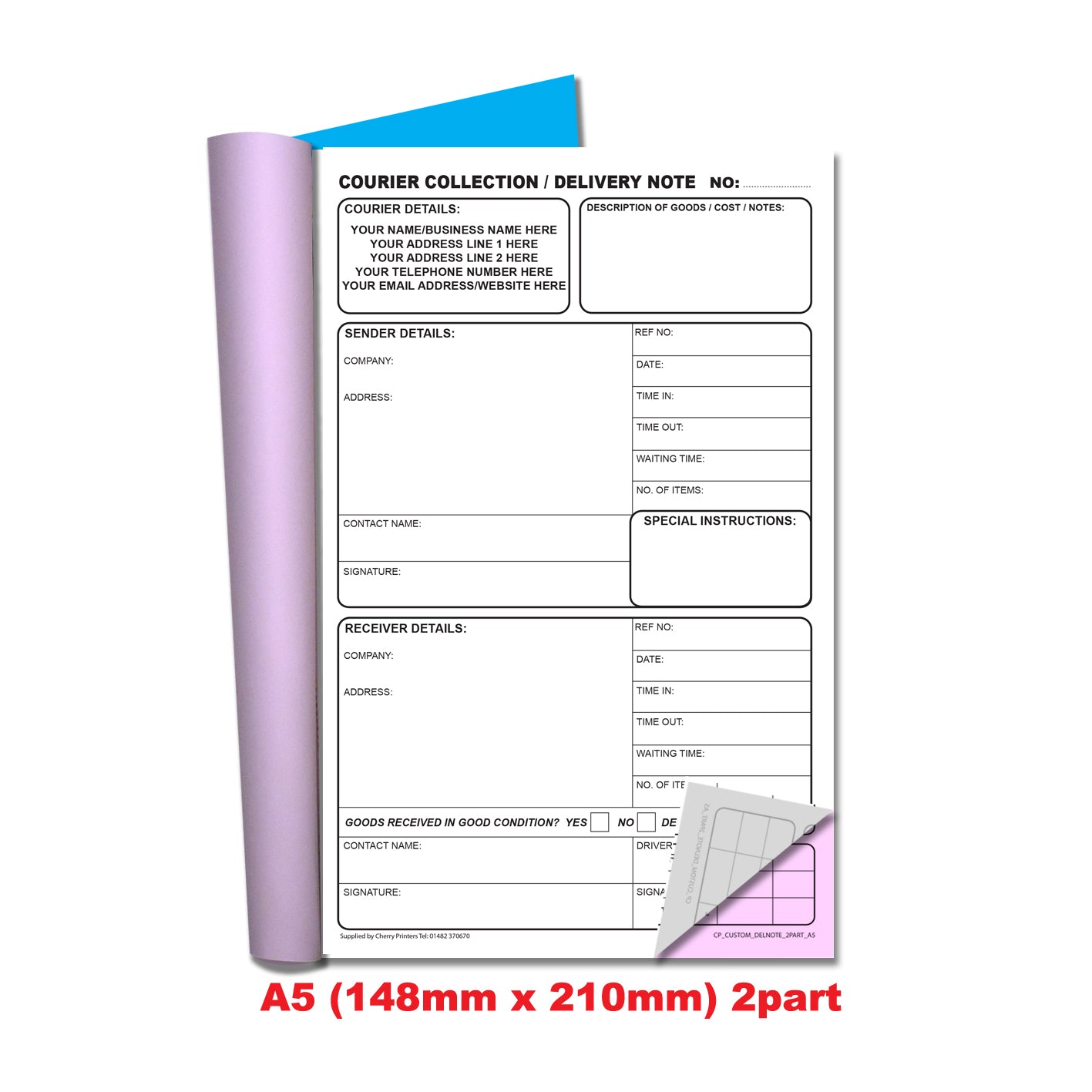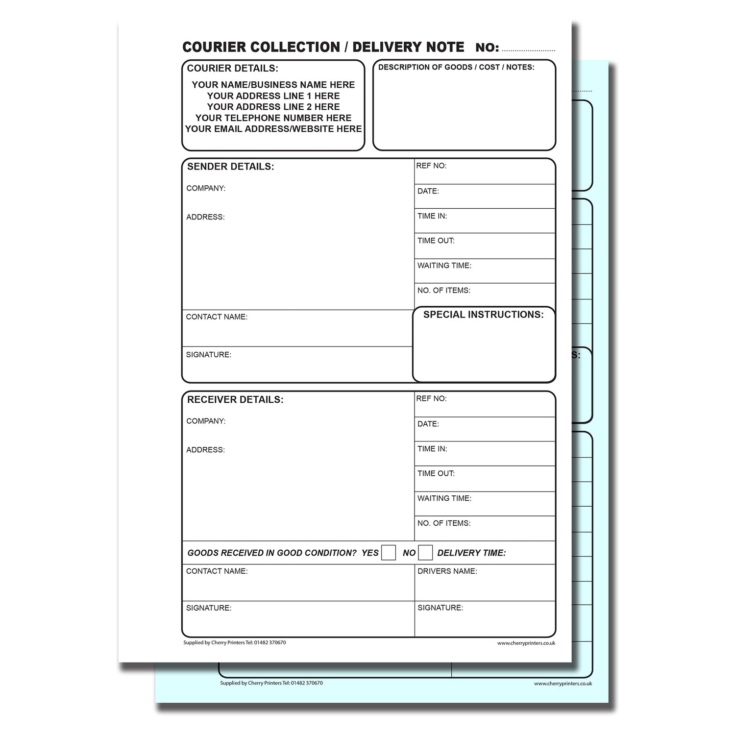 - Custom Courier Collection/Delivery Note duplicate book for giving a detailed note to customer, whilst keeping a duplicate copy in the book.