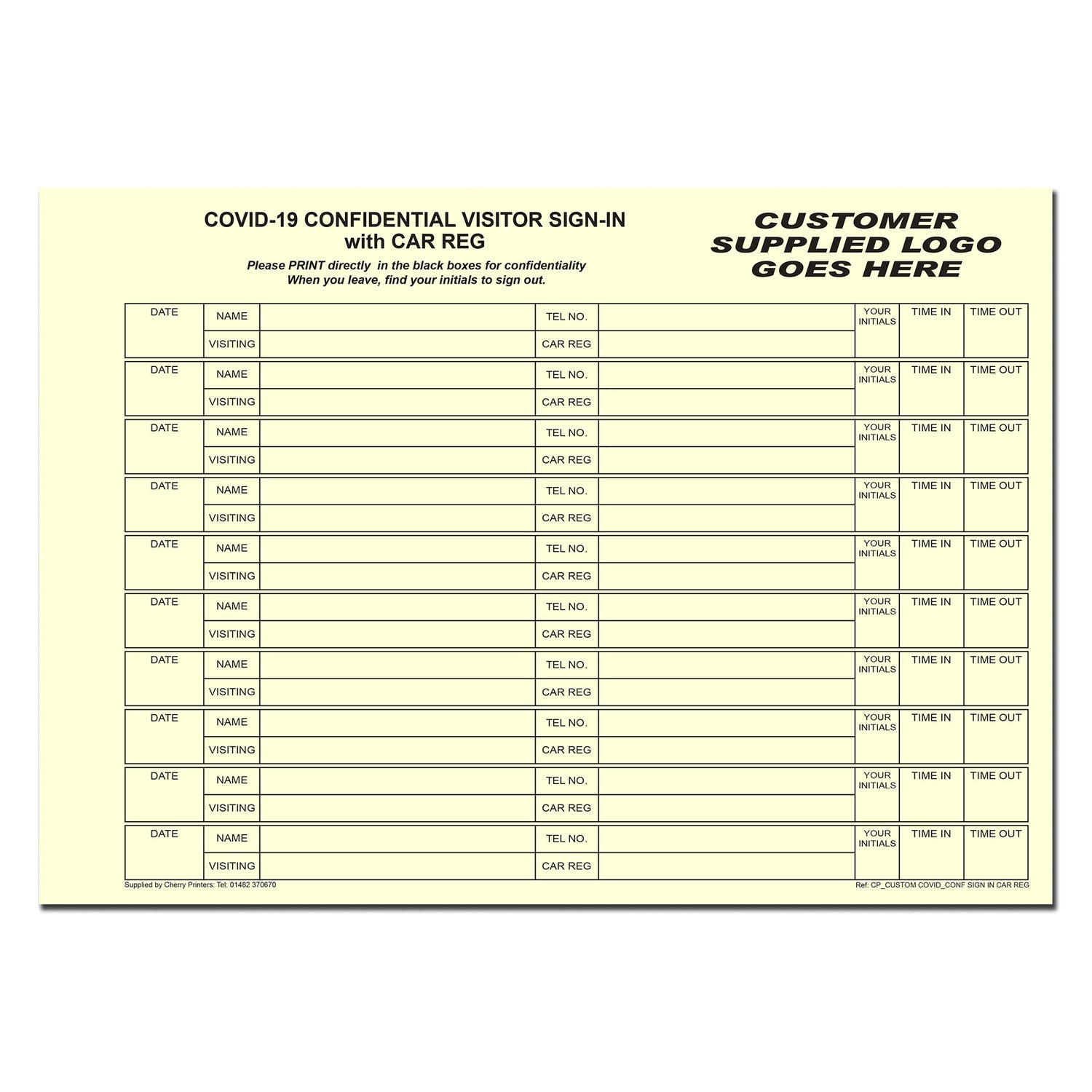 - Customised COVID Confidential Visitor Sign-In Book with car reg