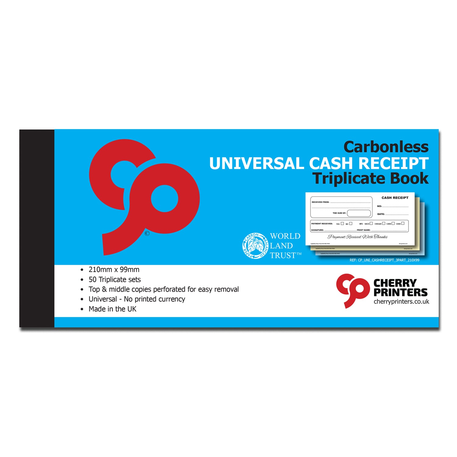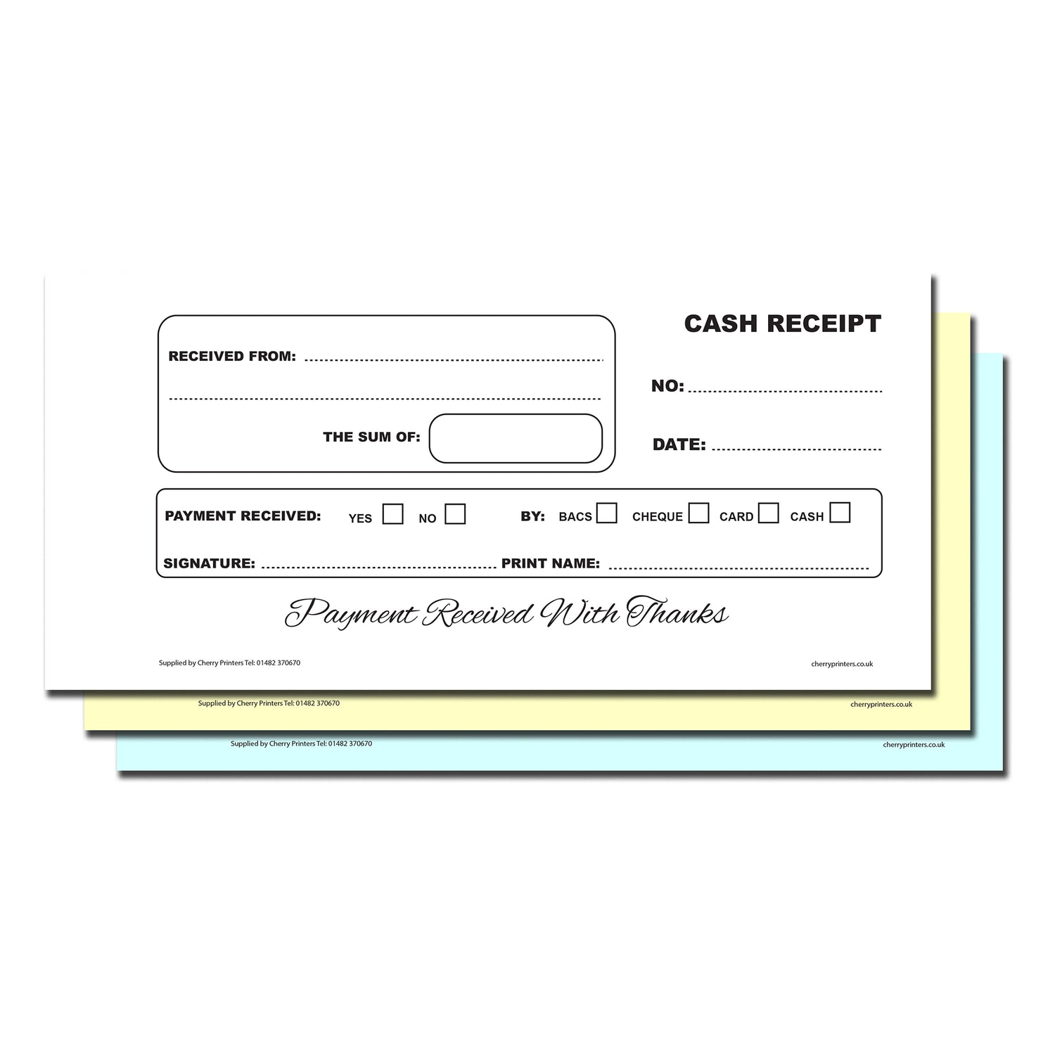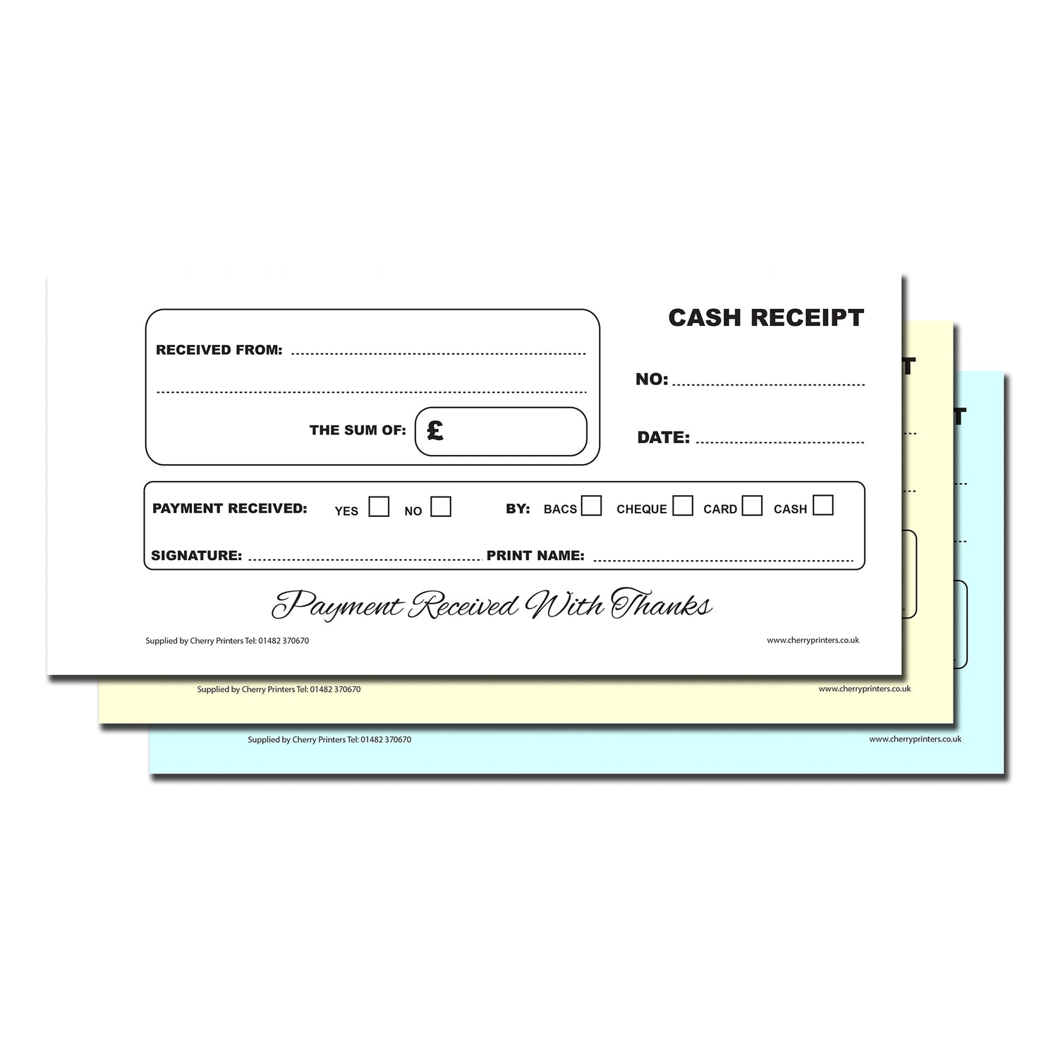 - Cash receipt triplicate book for issuing a receipt to customers, one to file and keeping a third copy in the book. With the added information of how the payment has been made for convenience.