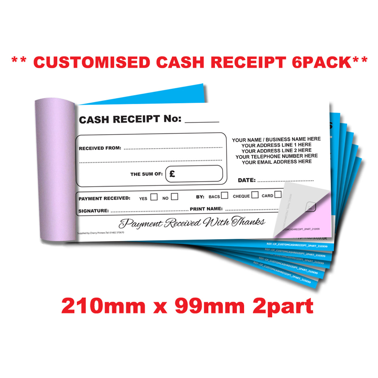 NCR *CUSTOM* Cash Receipt Duplicate Book 99x210mm | 6 Book Pack