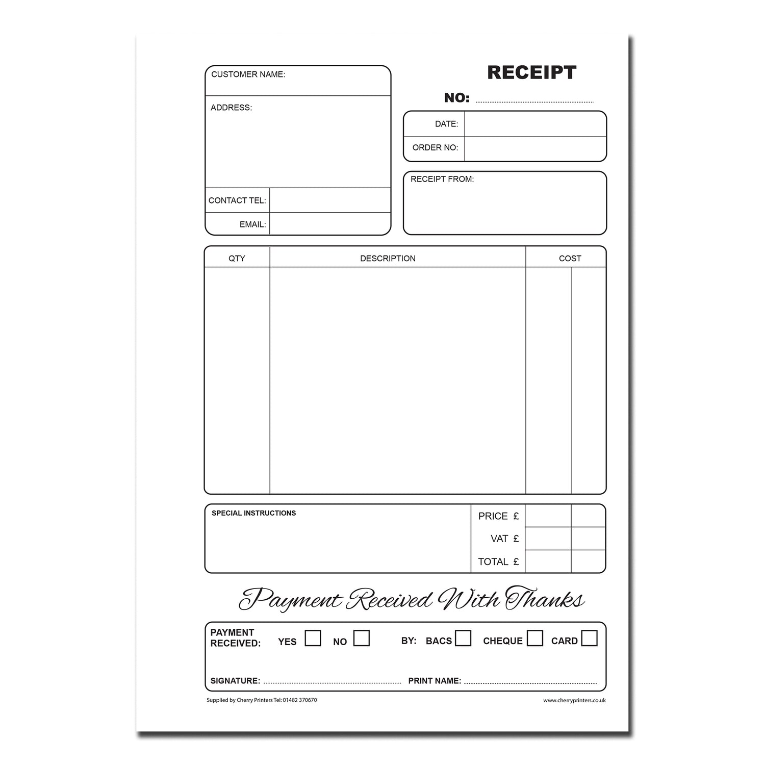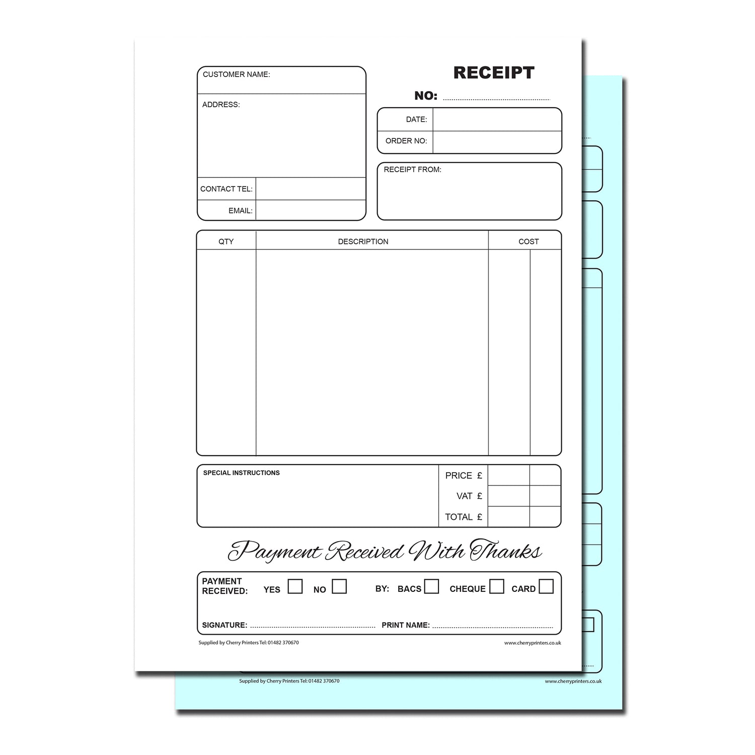 - Receipt duplicate book for issuing a detailed receipt to customers, whilst keeping a duplicate copy in the book. With the added information of how the payment has been made for convenience.