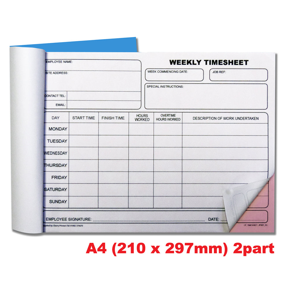 - No Carbon Required (NCR) Weekly Timesheet, for keeping a record of hours worked.