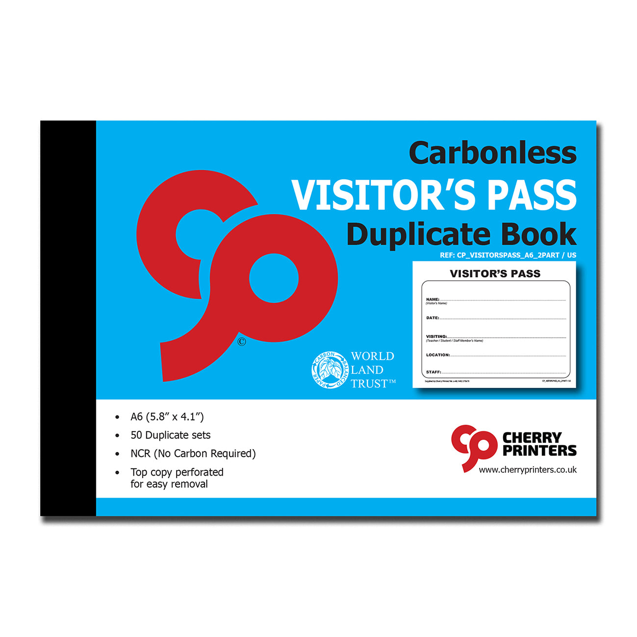 Visitor's Pass | Duplicate Book | 2 part | Carbonless | 50 Sets per book | A6 - 5.8" x 4.1" | BOX OF 80 BOOKS
